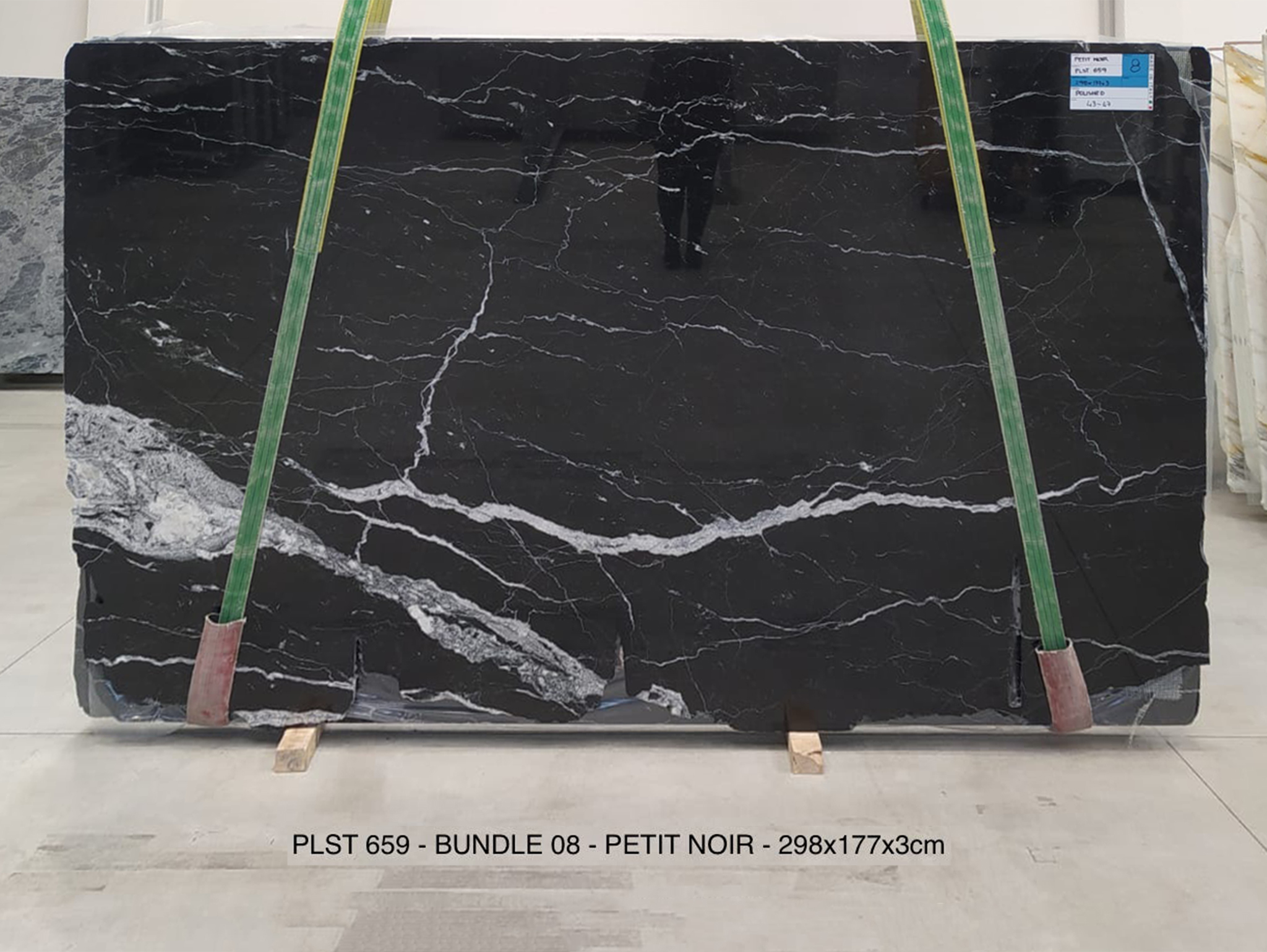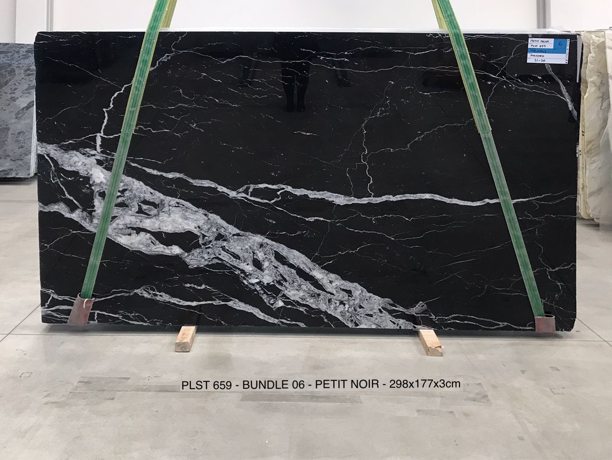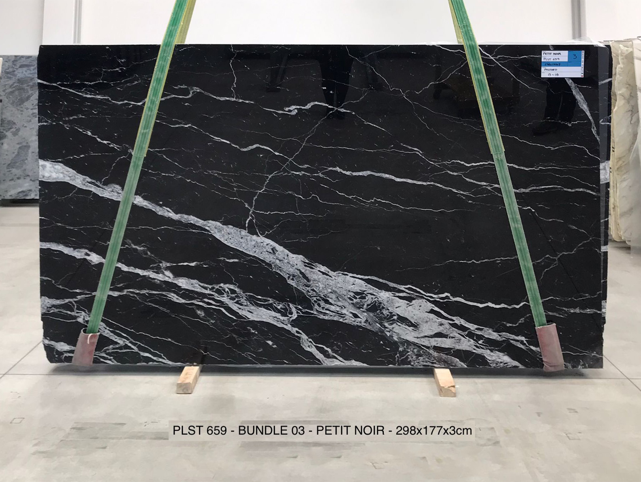 PETIT NOIR (PLST659) Quantity Available: 32 Dimension: 298X177; Thickness: 3CM Finish: POLISHED FINISH Price for the all slabs: € 90,00 / MQ