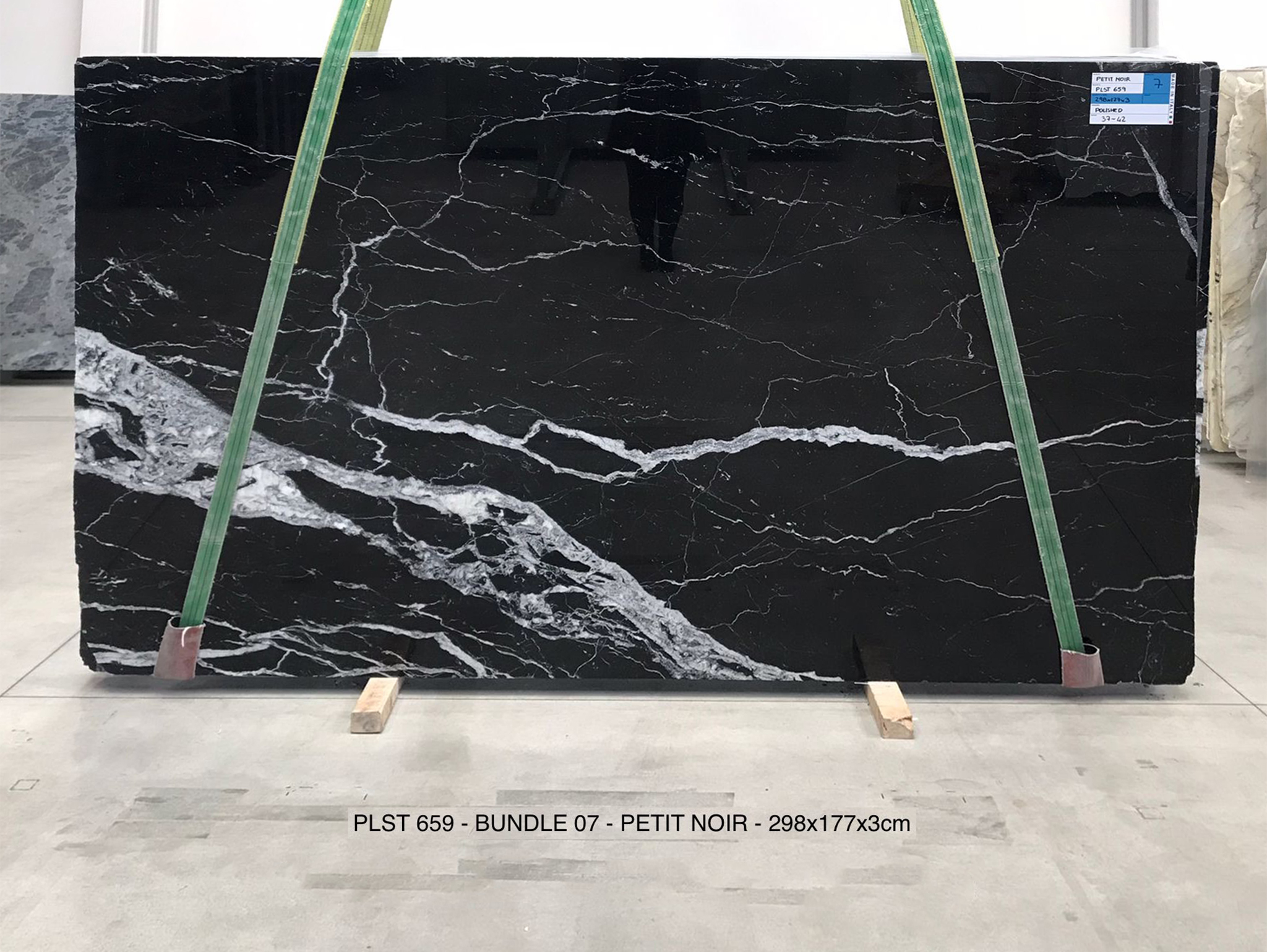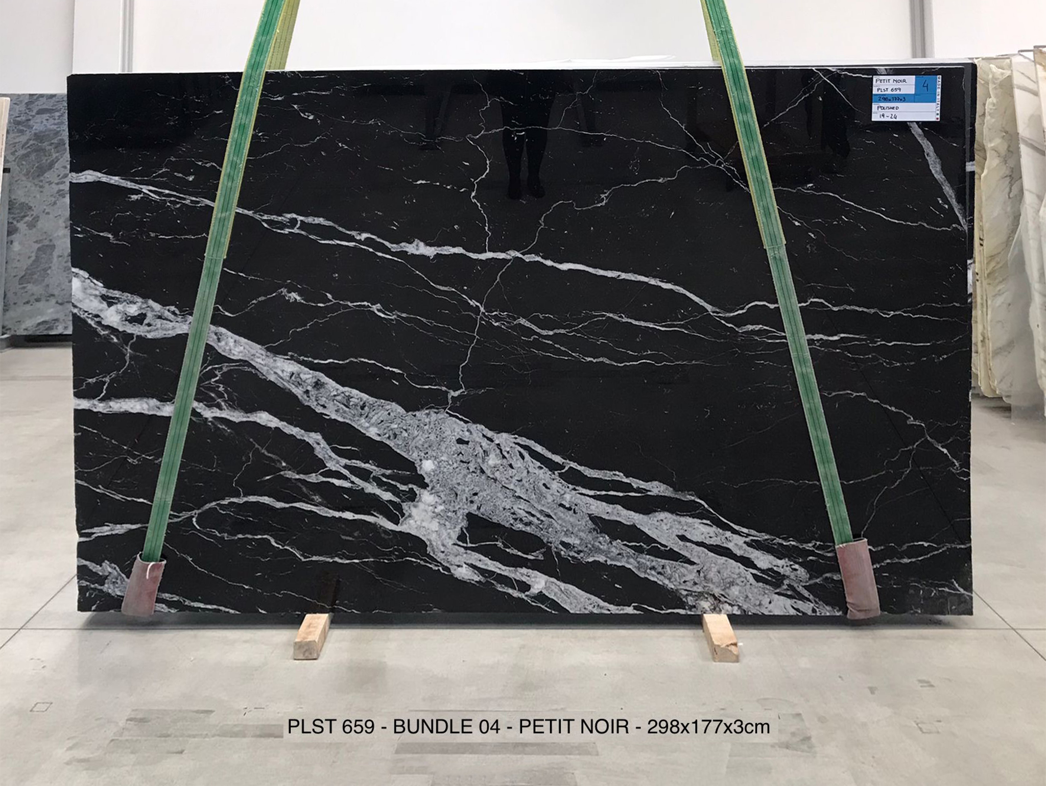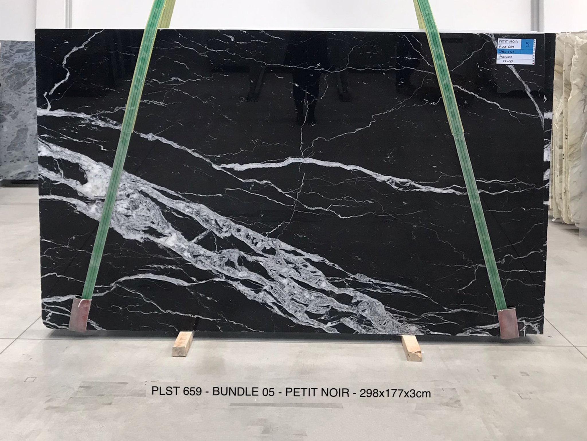 PETIT NOIR (PLST659) Quantity Available: 32 Dimension: 298X177; Thickness: 3CM Finish: POLISHED FINISH Price for the all slabs: € 90,00 / MQ